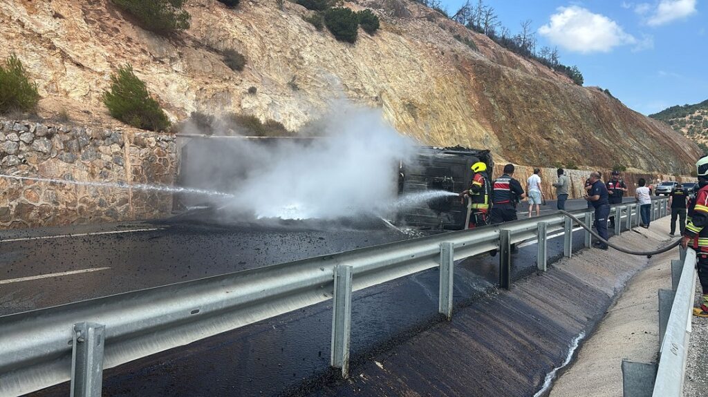 Balıkesir’in Havran ilçesinde zift yüklü bir kamyonun devrilmesi sonucu Balıkesir-Edremit kara yolunda ulaşım bir süre aksadı.