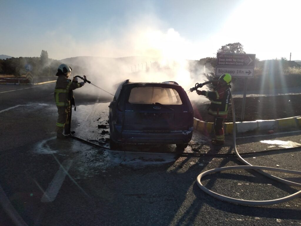 Edremit-Balıkesir Karayolu’nun Büyükşapçı Mevkisinde meydana gelen olayda, henüz belirlenemeyen bir nedenle hareket halindeki 34 AJ 0313 plakalı otomobilde aniden yangın çıktı.