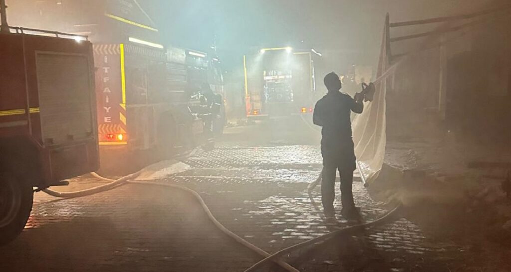 Ayvalık’ın 150 Evler Mahallesi’nde bulunan Uğur Sanayi Sitesi’nde henüz sebebi belirlenemeyen yangına, Ayvalık İtfaiye Grup Amirliği bünyesindeki 3 arasöz ve 13 personelle müdahale edildi.