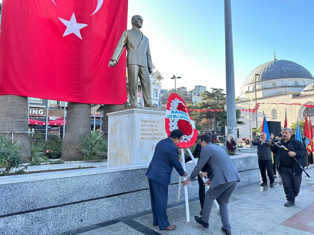 24 Kasım Öğretmenler Günü etkinlikleri Bandırma’da Cumhuriyet Meydanı’nda düzenlenen çelenk sunma töreniyle başladı. Törene Bandırma Kaymakamı Engin Aksakal, Belediye Başkanı Dursun Mirza, İlçe Millî Eğitim Müdürü Mutlu Aslan, okul müdürleri, öğretmenler, öğrenciler ve vatandaşlar katıldı.
