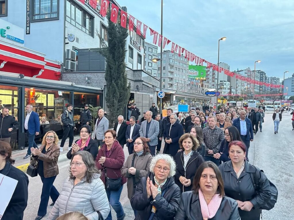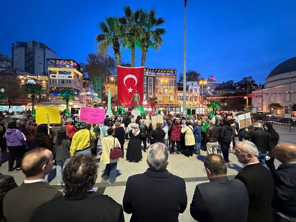 Yürüyüşte kadınlar ön saflarda yer alırken, katılımcılar destek ve dayanışma mesajlarıyla korteje eşlik etti. “Kadına yönelik şiddete son”, “Eşitlik ve adalet için omuz omuza” sloganlarıyla ilerleyen grup, Cumhuriyet Meydanı’nda basın açıklaması yaptı.