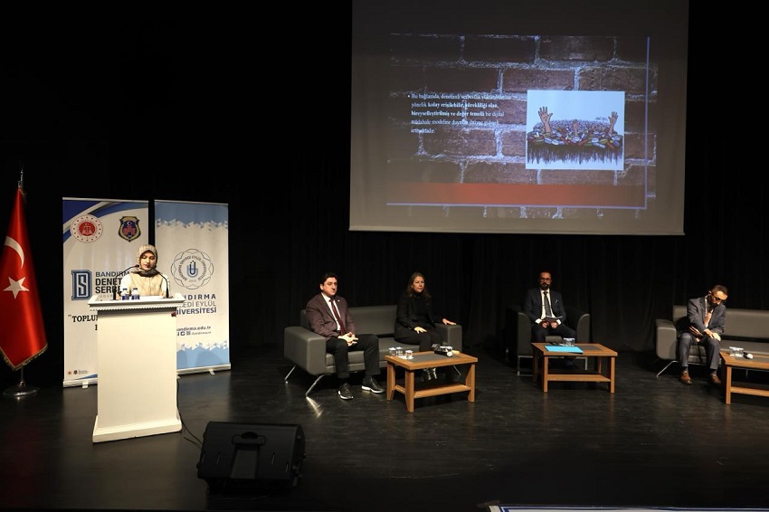 Mehmet Akif Ersoy Konferans Salonu’nda gerçekleştirilen panele; 6. Ana Jet Üs ve Garnizon Komutanı Hava Pilot Tuğgeneral Esat Çetin, Bandırma Cumhuriyet Başsavcısı İsmail Olgun Kurt, Bandırma Adalet Komisyonu Başkanı Mehmet Kahyaoğlu, Rektör Prof. Dr. İsmail Boz, Denetimli Serbestlik Müdürü Özcan Deniz, Rektör Yardımcıları Prof. Dr. Alpaslan Serel, Prof. Dr. Ebru Kaya Mutlu ve Prof. Dr. Mehmet Emin Erçakar, protokol üyeleri, sivil toplum kuruluşu temsilcileri, akademisyenler, idari personel ve öğrenciler katıldı.