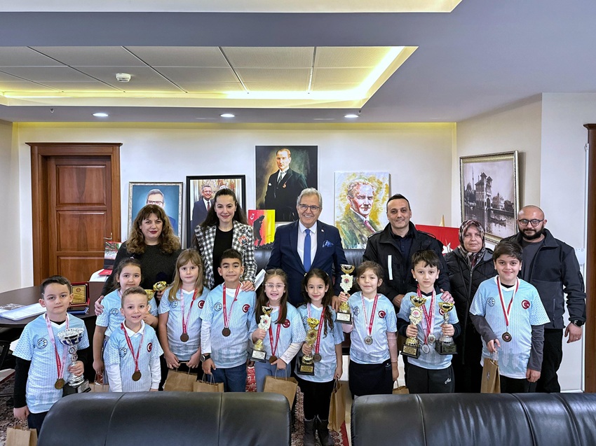 Bandırma Satranç Kulübü Yöneticisi ve Satranç İlçe Temsilcisi Cemile Gülay Yıldırım ile birlikte, farklı yaş gruplarında önemli dereceler elde eden genç satranç sporcuları Bandırma Belediyesi’nde ağırlandı.