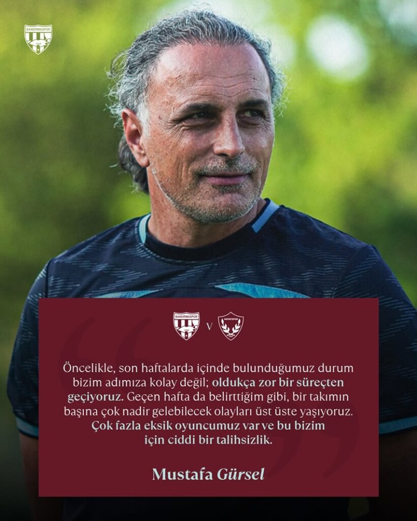 Öncelikle, son haftalarda içinde bulunduğumuz durum bizim adımıza kolay değil; oldukça zor bir süreçten geçiyoruz. Geçen hafta da belirttiğim gibi, bir takımın başına çok nadir gelebilecek olayları üst üste yaşıyoruz. Çok fazla eksik oyuncumuz var ve bu bizim için ciddi bir talihsizlik. Üstelik bu sadece sakatlıklarla da sınırlı değil; sağlık problemi yaşayan üç oyuncumuz daha var. Ancak bu dönemin de düzeleceğine inanıyorum.