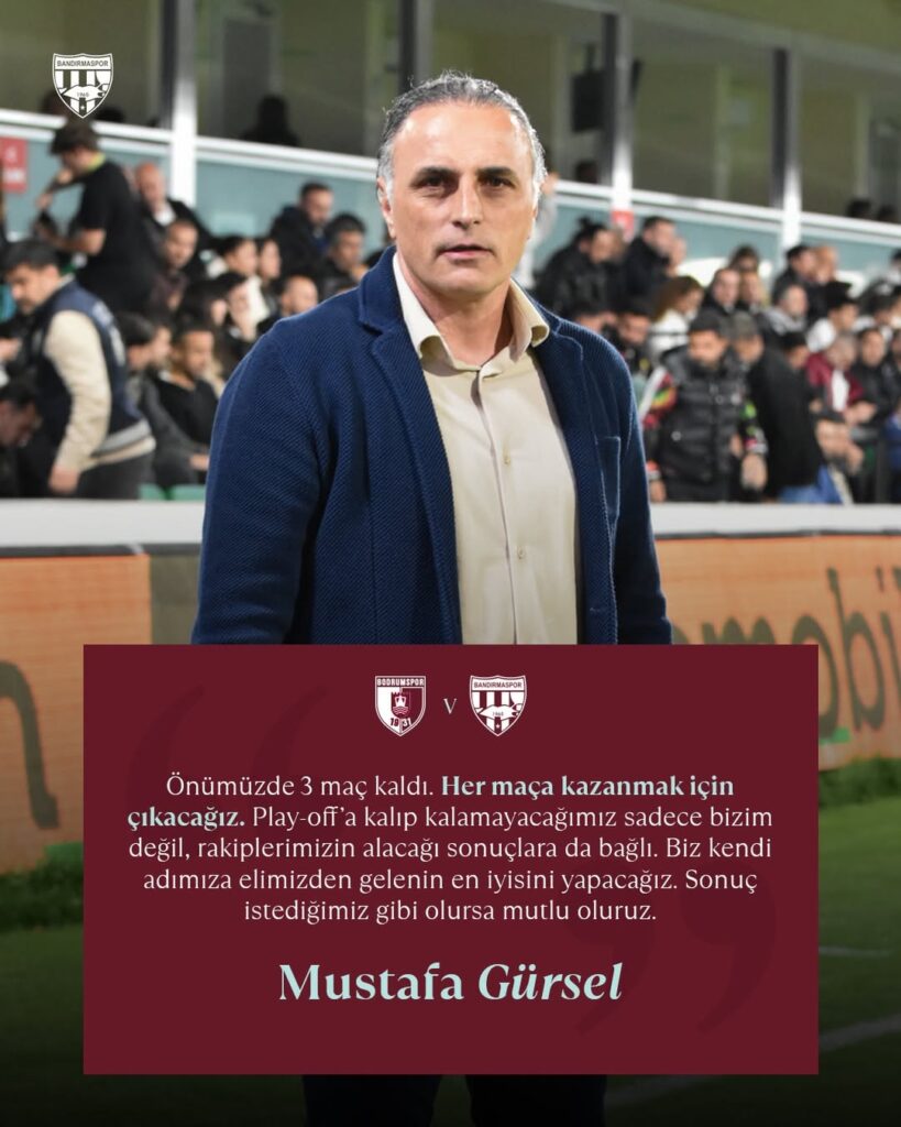 Oyuncularıma teşekkür ediyorum. Her zaman söylüyorum; sezonu nasıl tamamlarsak tamamlayalım, bu yıl ellerinden gelenin en iyisini yaptılar. Yaşadığımız zorlukları çok fazla dışarı yansıtmadan, kendi içimizde çözerek bu noktaya geldik. Bu şartlarda 53 puana ulaşmak önemli. Bandırmaspor her zaman hedefi olan bir takım.