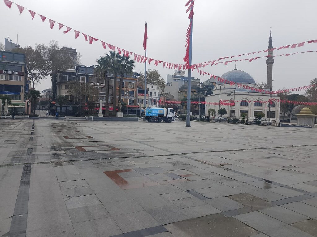 Aylardır yapılan etkinlikler sebebiyle kirlilikten rengi değişen parke taşlar 2 Aralık Salı günü sabah erken saatlerde Büyüksehir ekipleri tarafından temizlendi. Balıkesir Büyüksehir Belediyesi Güney Marmara Koordinatörü Murat Karakoyunun bizzat ilgilendiği temizleme çalışmalarında Meydan haşerelere karşı önce ilaçlanırken ardından köpüklü suyla yıkandı.