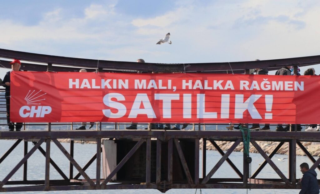 CHP Bandırma İlçe Örgütü ve vatandaşların katılımıyla gerçekleştirilen etkinlikte Sahil Bandı Köprüsü’ne Satılıktır pankartı asılarak basın açıklaması gerçekleştirildi.