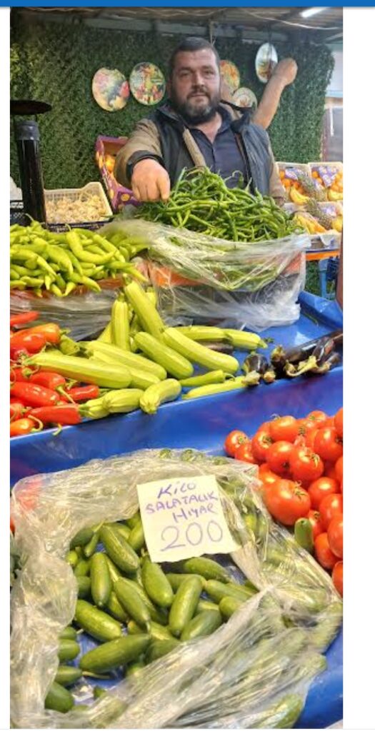 Tekel otoparkı köşesinde sarımsaktan kavuna, domatesten pırasaya kadar çok çeşit sebze ve meyve satılan manav tezgahındaki meyve ve sebze fiyatlarında geçen hafta 300 lira olan fiyatıyla zirve yapan çilekten sonra bu hafta da 200 liralık fiyatıyla yeşillik olarak da nitelendirilen salatalık hıyar zirvede yerini aldı.