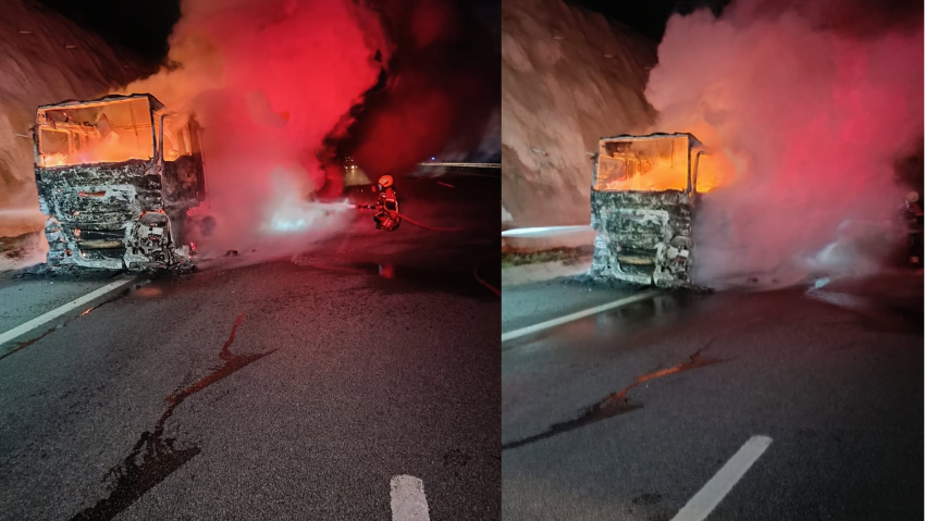 Romanya plakalı tır, ekiplerin yoğun çabalarına rağmen tamamen yanarak kullanılamaz hale geldi. Yangında sürücünün yara almadan kurtulduğu öğrenildi.