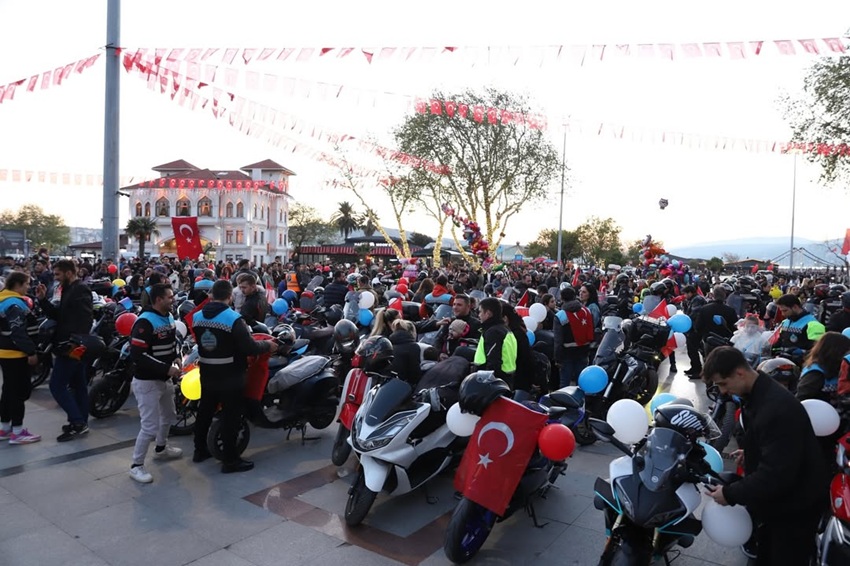 Bandırma Motosiklet Platformu’nun düzenlediği motor korteji ile başlayan etkinlik, Cumhuriyet Meydanı’nda çocukların bayram coşkusuyla son buldu.