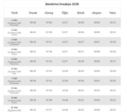 Bandırma’da ilk 10 gün için sahur ve iftar vakitleri .