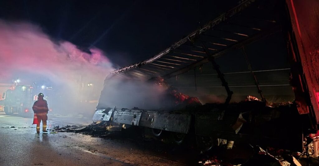 Balıkesir-Bandırma Karayolu’nun Bandırma istikameti, Susurluk İlçesi Kepekler mevkiinde karton yüklü bir tırın dorsesinde yangın çıktı. Olay yerine kısa sürede ulaşan ekipler, yangına hızlı bir şekilde müdahale etti.
