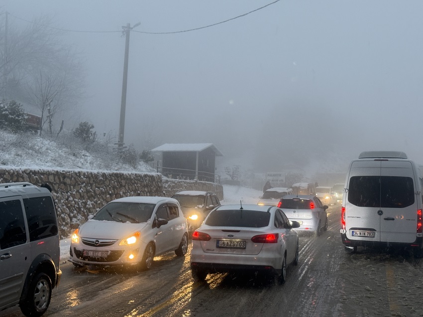 Uludağ’da geliş ve gidiş istikametine uzun araç kuyrukları oluştu.